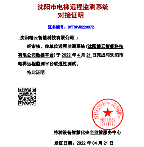 電梯物聯網設備通過沈陽市電梯遠程監測系統驗證
